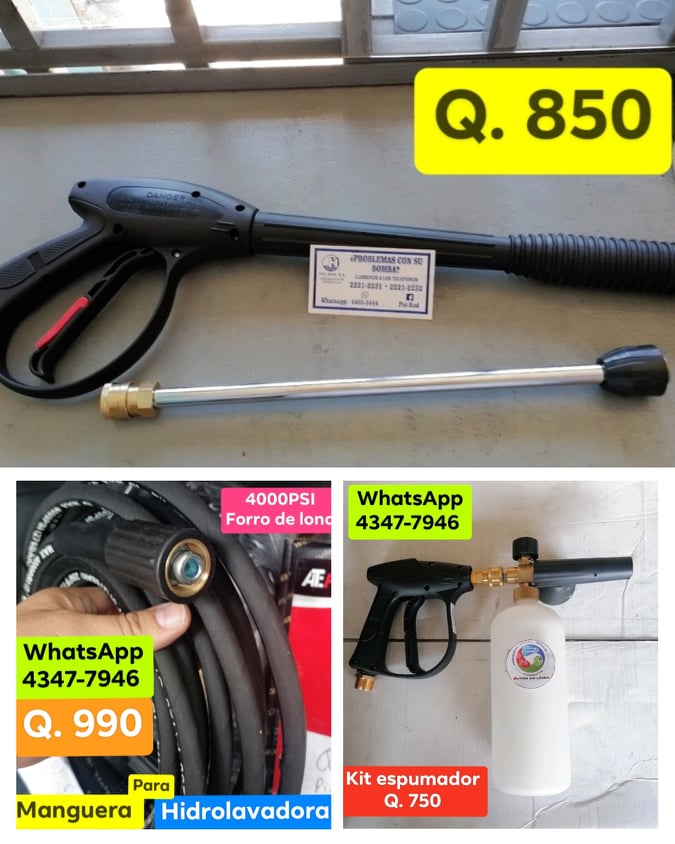 ** Hidrolavadoras a Gasolina, 2700 y 3300PSI, Aspiradoras para seco y mojado de 12, 14 y 16 Galones, Espumadoras, repuestos y taller de servicio y reparación.